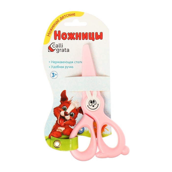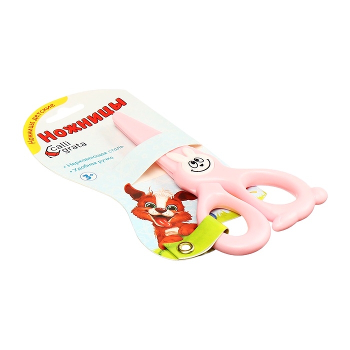 Ножницы 11,8см пластиковые ручки, закругленные концы лезвий, Зайчик розовый CALLIGRATA