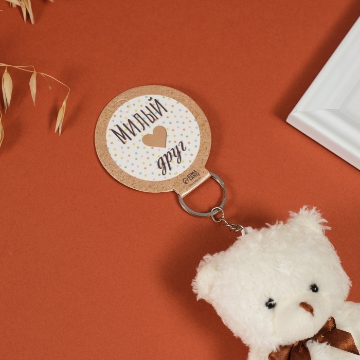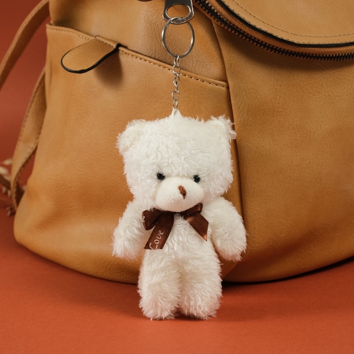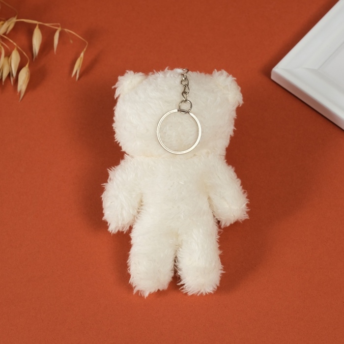 Брелок текстиль "Мишка белый с бантиком" 8х5х13 см