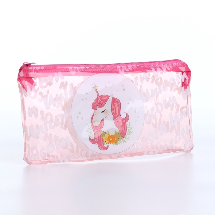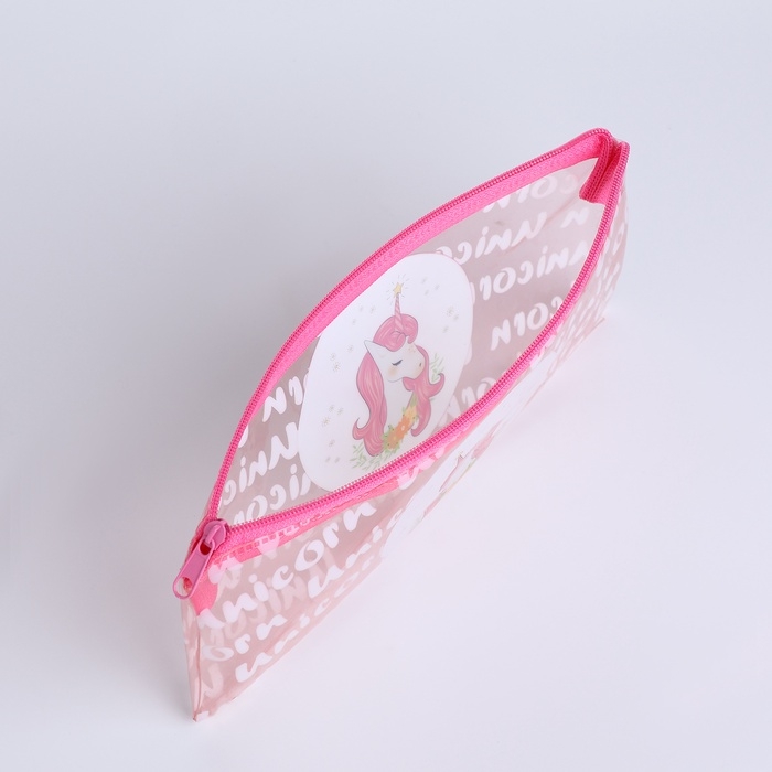 Косметичка-пенал Единорог, 20,5*0,5*9,5см, отд на молнии, розовый
