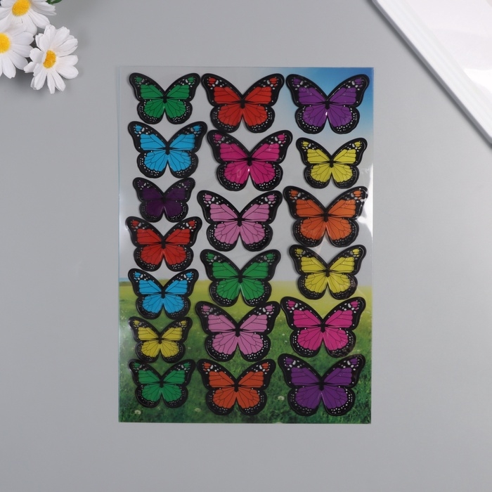 Наклейка пластик интерьерная "Бабочки полупрозрачные" разноцветные набор 19 шт 5; 6; 7 см