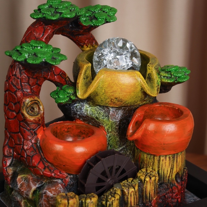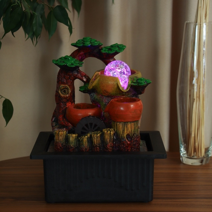 Фонтан "Бочки с зеленью у забора" 26х22,5 см (с подсветкой)