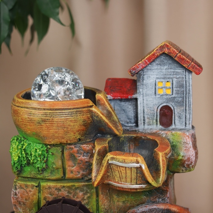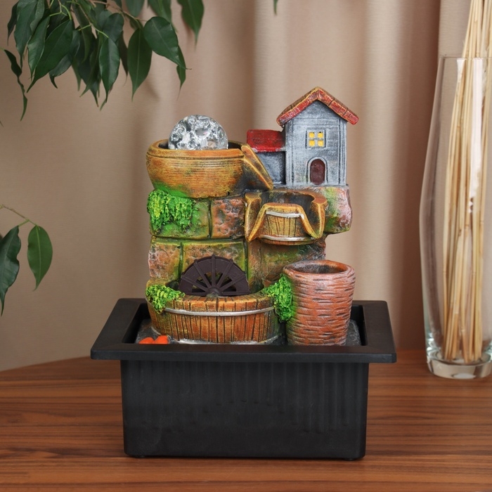 Фонтан "Бочки у домика на камнях" 26х22,5 см (с подсветкой)