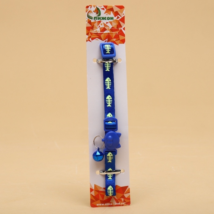 Ошейник кошачий "Рыбёшка" светящийся, с бубенчиком, 30 х 1 см, полиэстер, синий