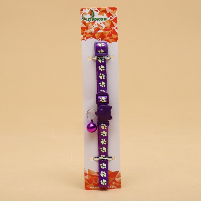 Ошейник кошачий "Душечка" светящийся, с бубенчиком, 30 х 1 см, полиэстер, фиолетовый