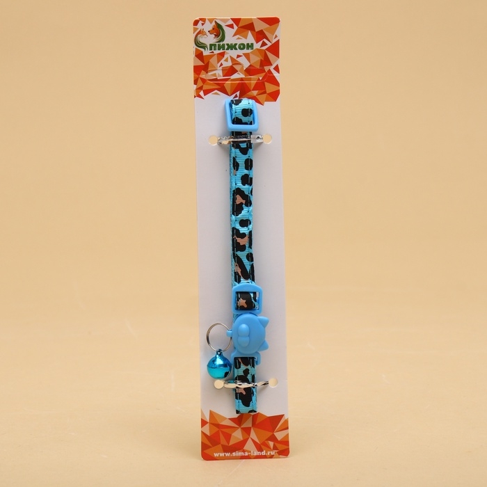 Ошейник кошачий "Леопар", с бубенчиком, 30 х 1 см, полиэстер, голубой