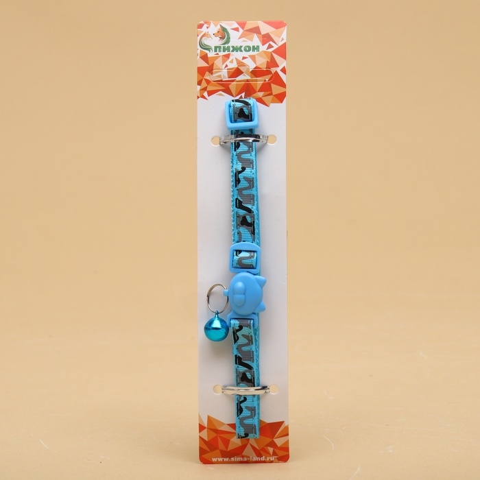 Ошейник кошачий "Котофляш", с бубенчиком, 30 х 1 см, полиэстер, голубой