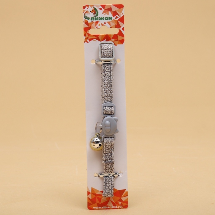 Ошейник кошачий "Нежность", с бубенчиком и подвесом, 30 х 1 см, полиэстер, серый