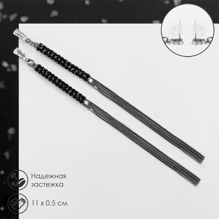 Серьги висячие со стразами «Капли» дорожка, цвет чёрный в серебре, 6,2 см