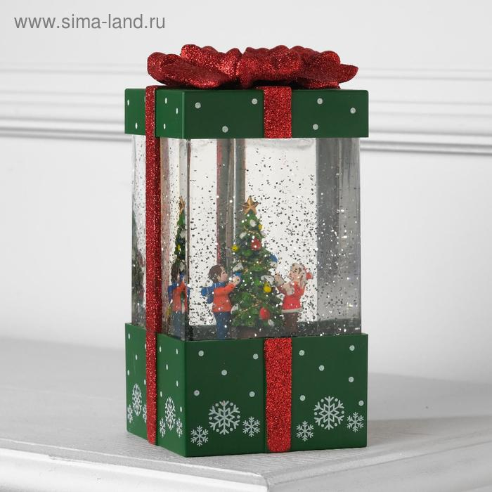 Светодиодная фигура «Подарок зелёный» 10 × 19 × 10 см, пластик, батарейки ААх3 (не в комплекте), USB, свечение тёплое белое