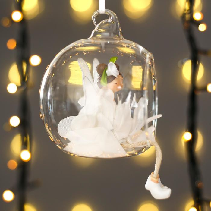 Сувенир полистоун "Фея-бабочка, в юбке лепестке пушок, в шарике" 9х8х10 см