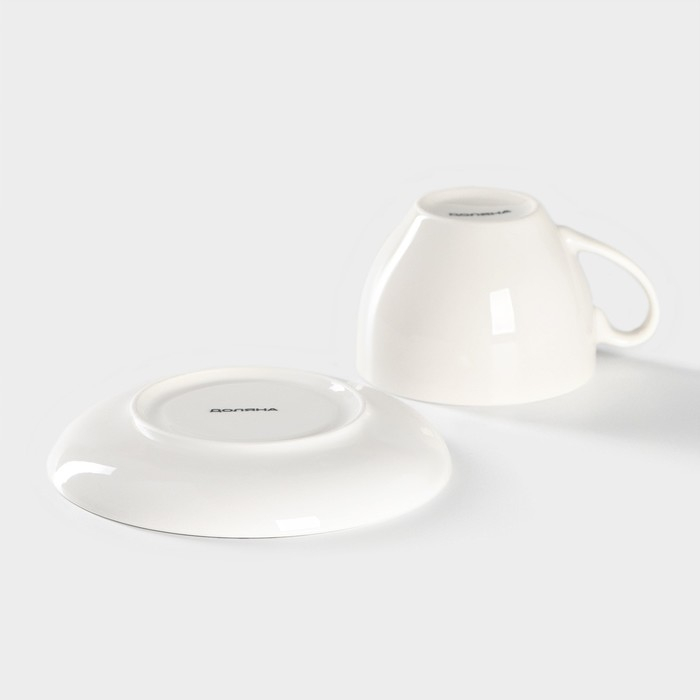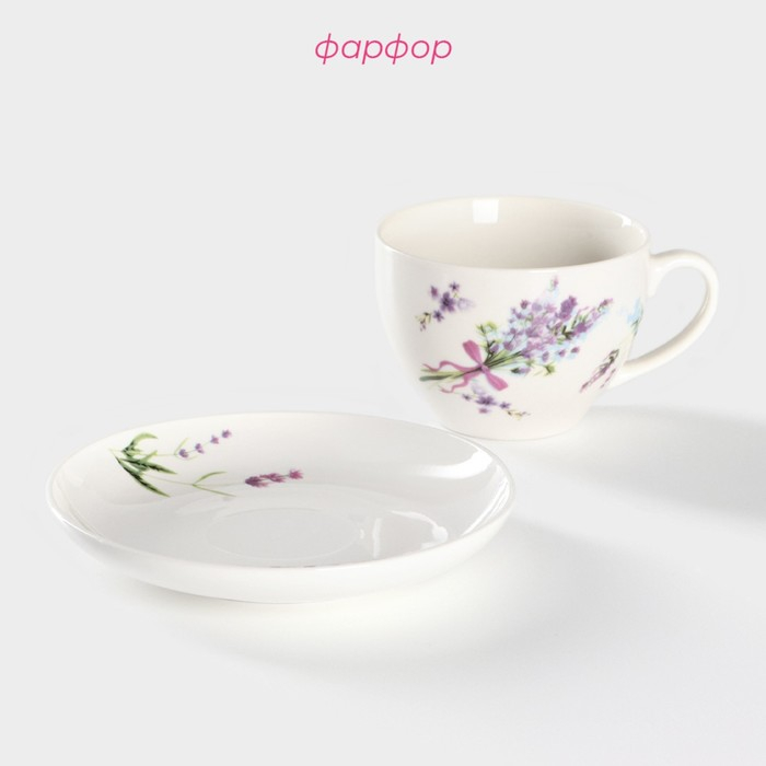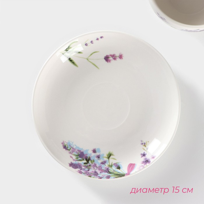Чайная пара фарфоровая Доляна «Лаванда», 2 предмета: чашка 250 мл, блюдце d=15 см, цвет белый