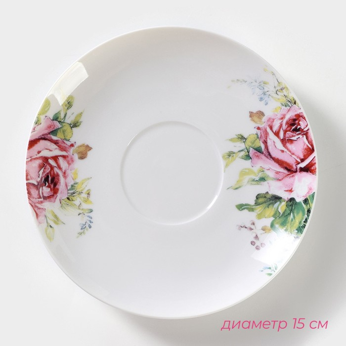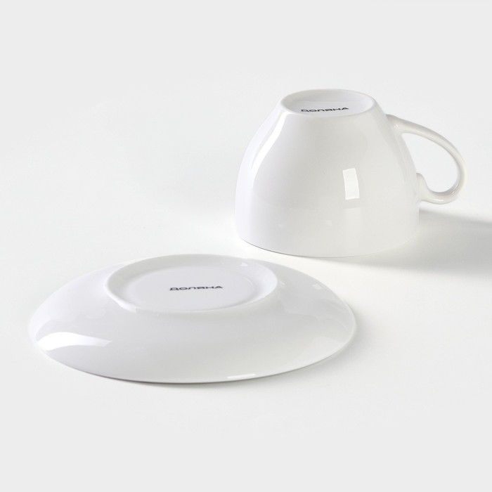 Чайная пара фарфоровая Доляна «Лаванда», 2 предмета: чашка 250 мл, блюдце d=15 см, цвет белый