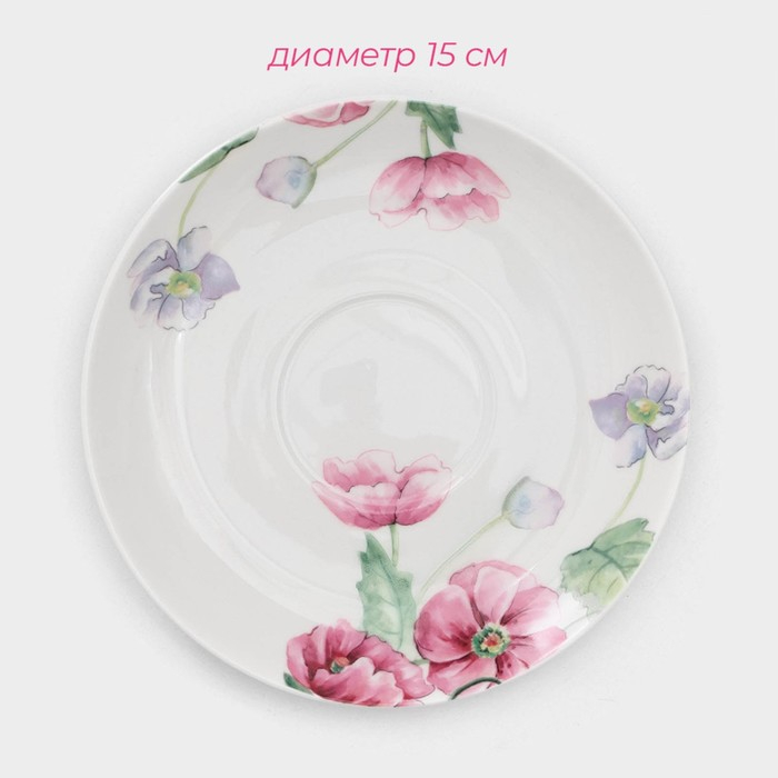Сервиз фарфоровый чайный Доляна «Лаванда», 12 предметов: 6 чашек 220 мл, 6 блюдец d=14 см