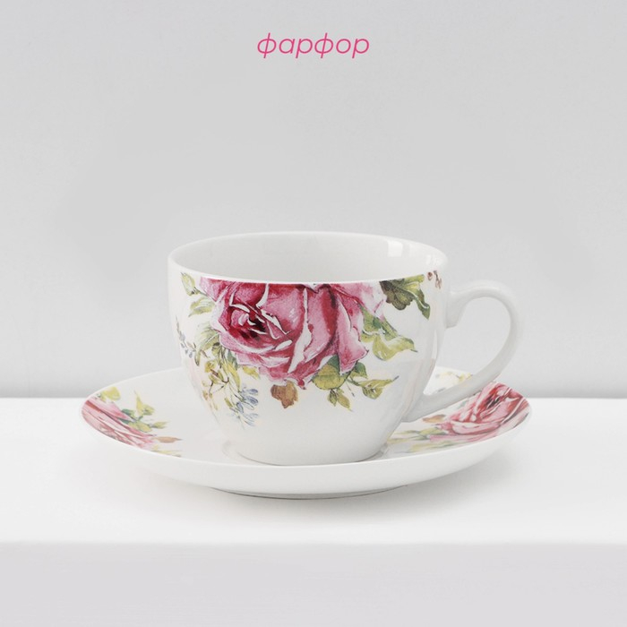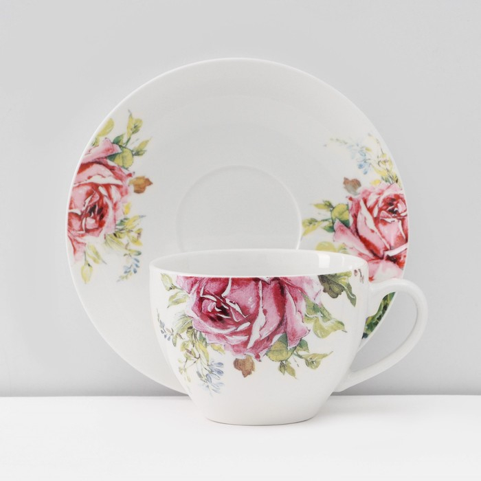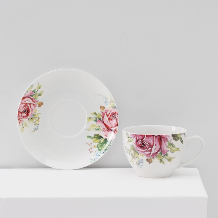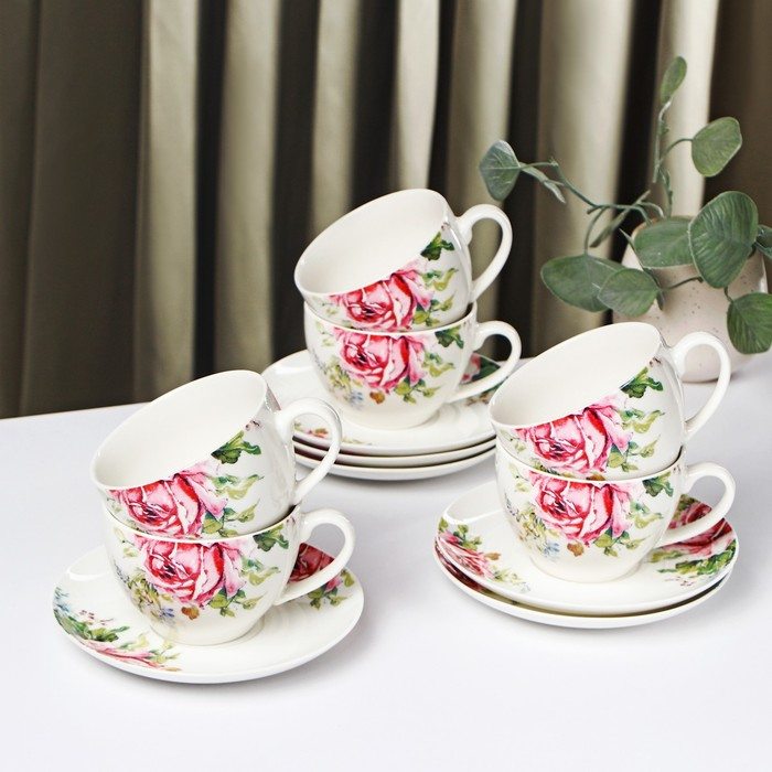 Сервиз фарфоровый чайный Доляна «Роза», 12 предметов: чашка 250 мл, блюдце d=15 см