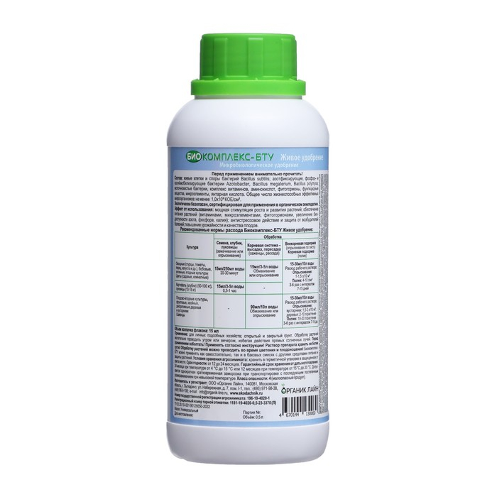 Универсальное Живое Удобрение Биокомплекс-БТУ, 500 мл – это микробиологический фунгицид и удобрение, которое применяется для поддержки оптимального питания и защиты от грибных и бактериальных заболеваний овощных, плодово-ягодных, декоративных культур, цветов, газонов и др.
