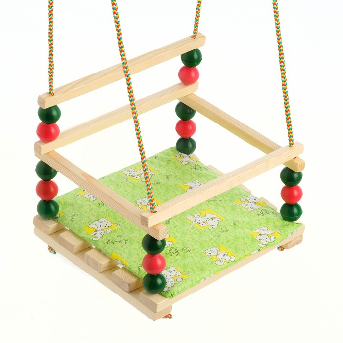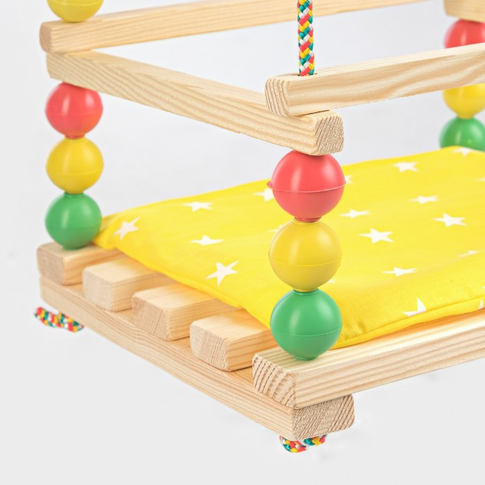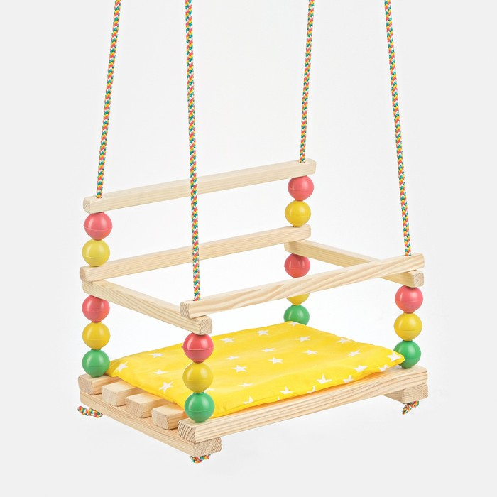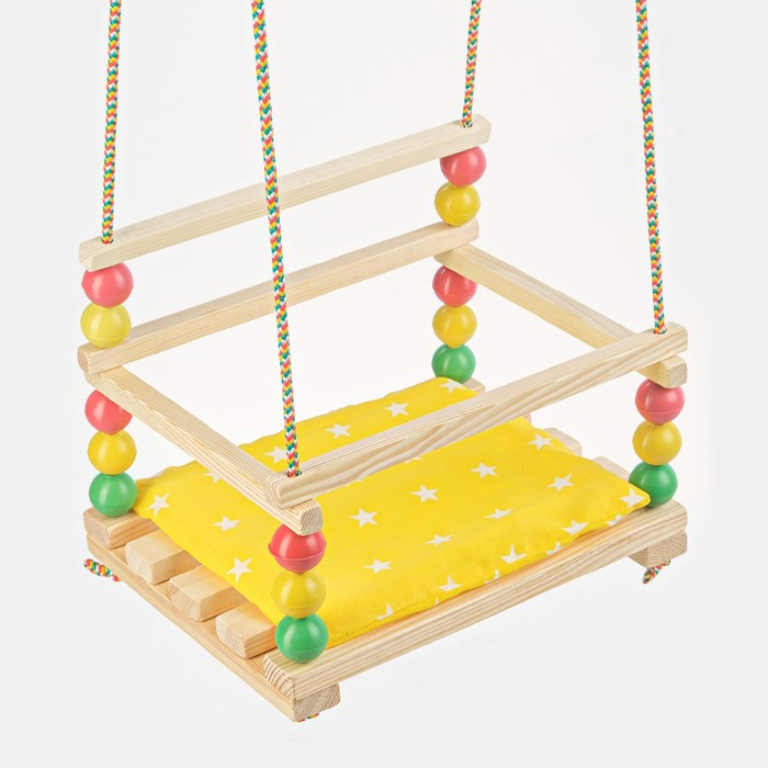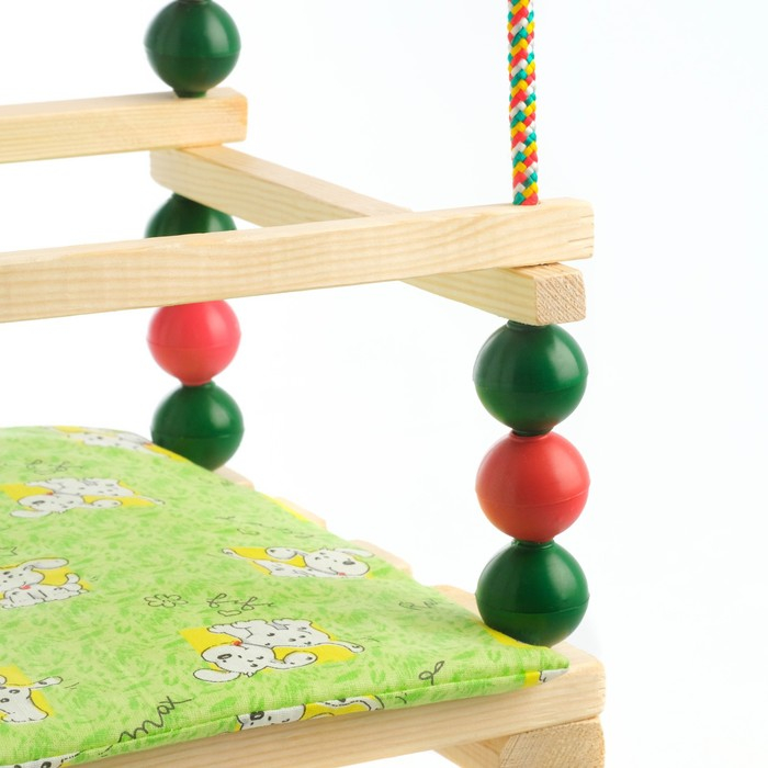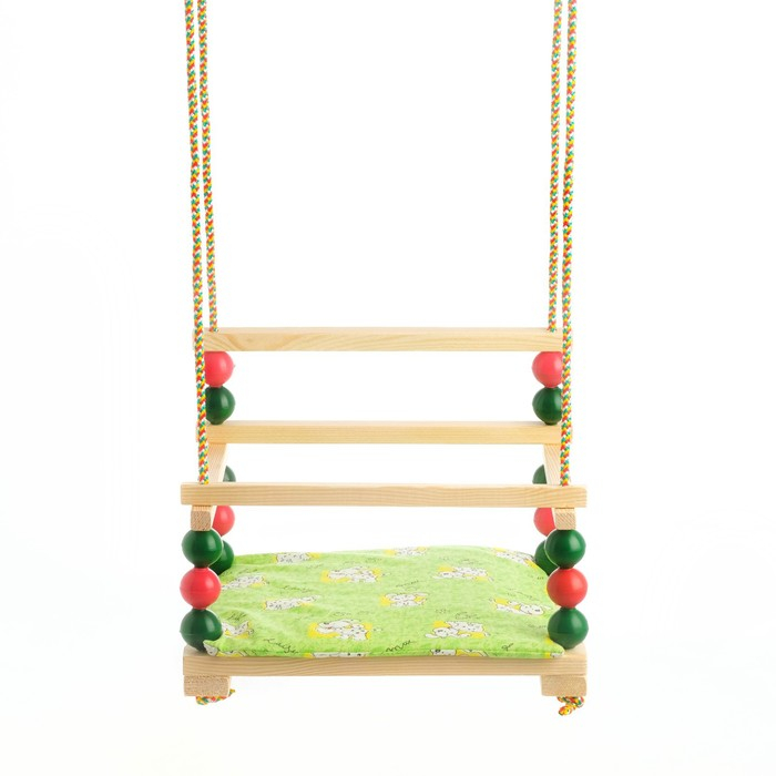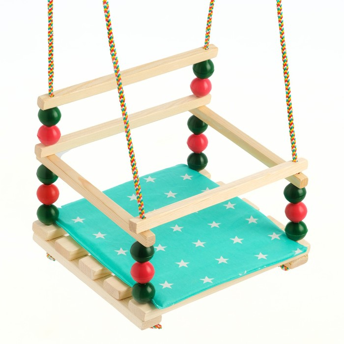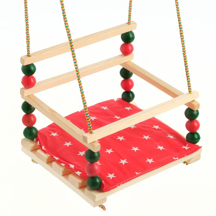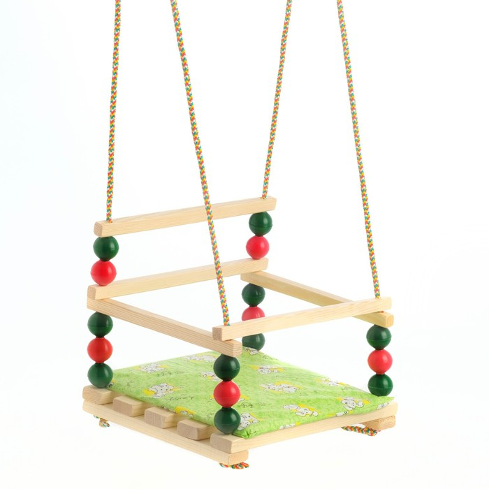 - Изделие изготовлено из дерева — это экологически чистый и безопасный материал. Даже если качели находятся на улице под прямыми солнечными лучами, ваш ребёнок не обожжётся.