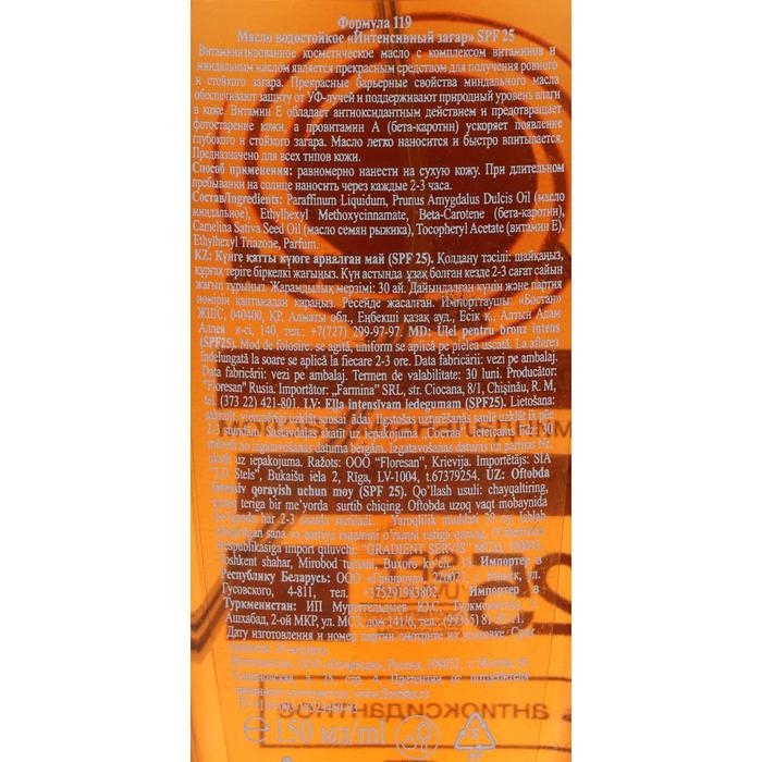 Масло водостойкое «Интенсивный загар» SPF 25, 150 мл