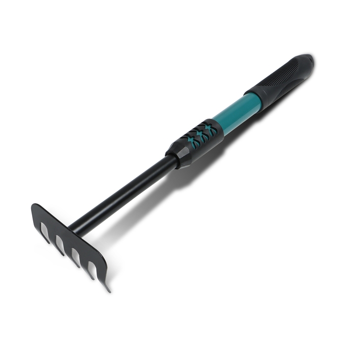 Грабли малые, прямые, 5 зубцов, длина 40,5 см, металл, металлическая рукоять с резиновой ручкой, Greengo