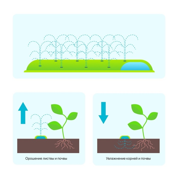 - Сорняки погибнут, потому что не получат влаги: жидкость попадает только к корням культурных растений.