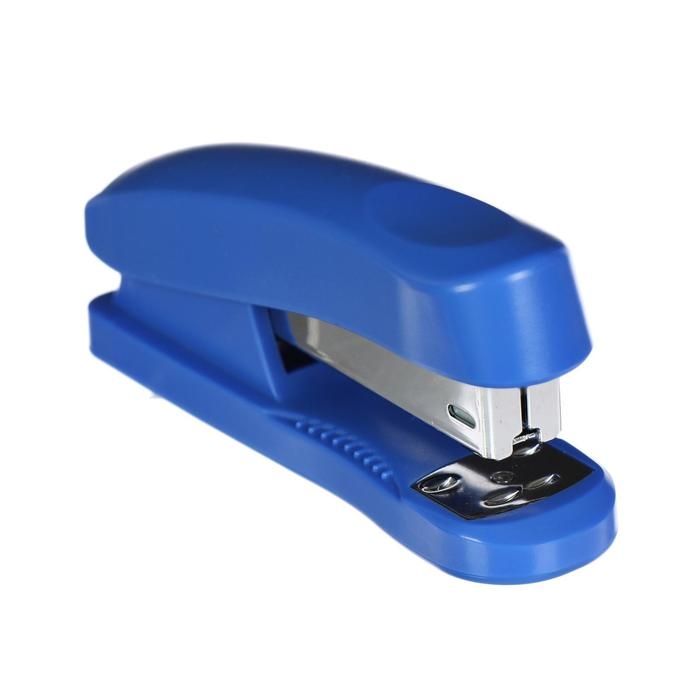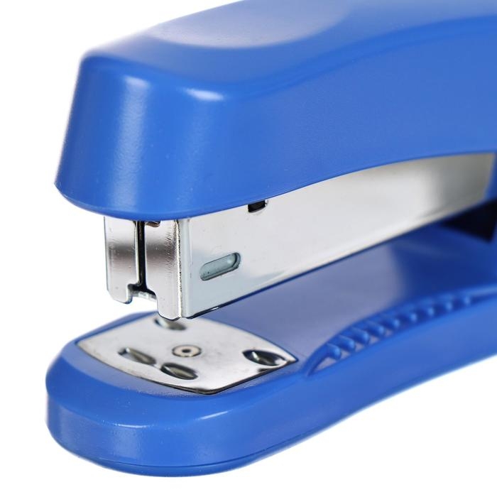 Степлер № 10 до 12 листов, BRAUBERG Einkommen, пластиковый корпус, встроенный антиСтеплер, синий