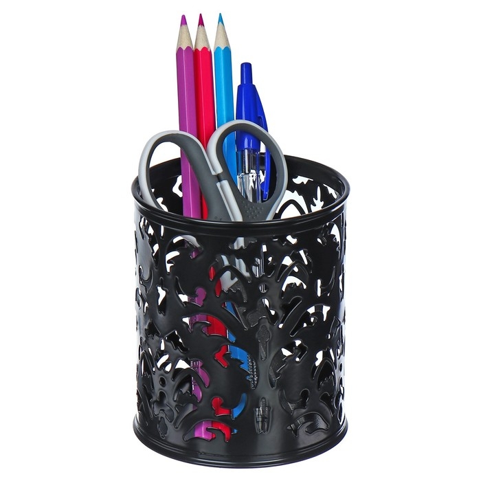 Долговечная металлическая подставка предназначена для хранения различных канцелярских принадлежностей.