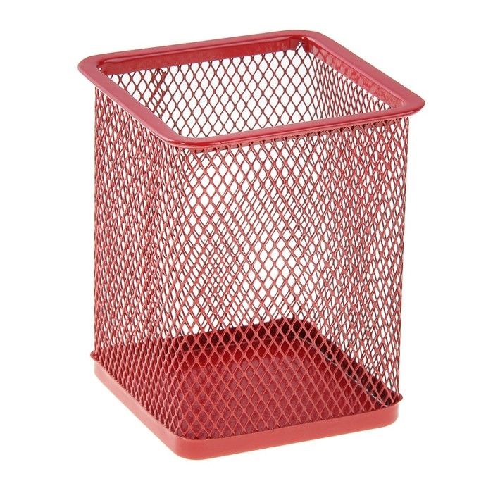 Стакан для пишущих принадлежностей, квадратный, металлическая сетка, красный