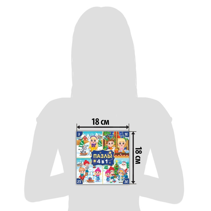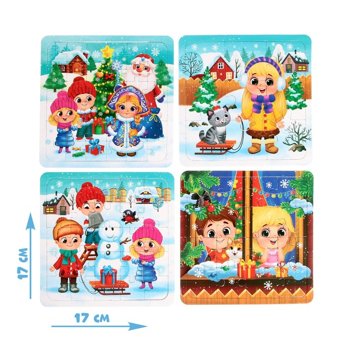 Пазлы 4 в 1 «Новогодние радости», 9, 16, 25, 36 элементов