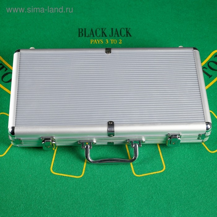 Покер в металлическом кейсе (2 колоды, фишки 300 шт., 5 кубиков), 20.5 х 38 см