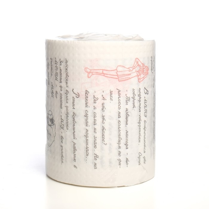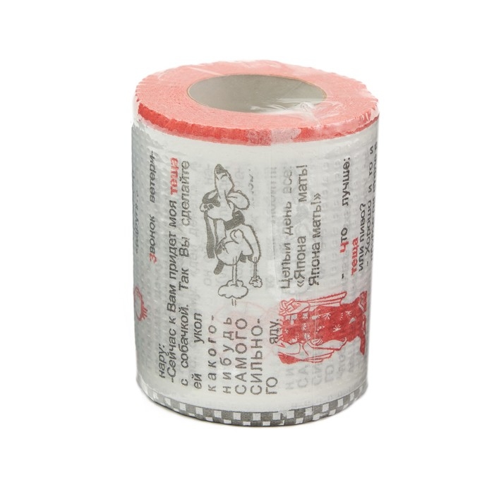 Качественная двухслойная туалетная бумага с весёлыми картинками и анекдотамина вечные темы не даст вам скучать нигде! Рулон имеет стандартный размер, упакован в термоплёнку