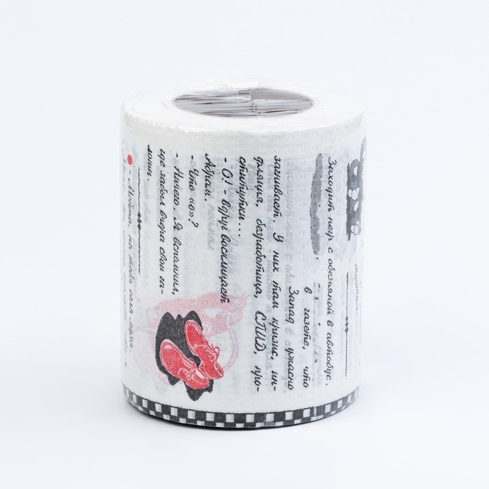 Качественная двухслойная туалетная бумага с весёлыми картинками и анекдотамина вечные темы не даст вам скучать нигде! Рулон имеет стандартный размер, упакован в термоплёнку