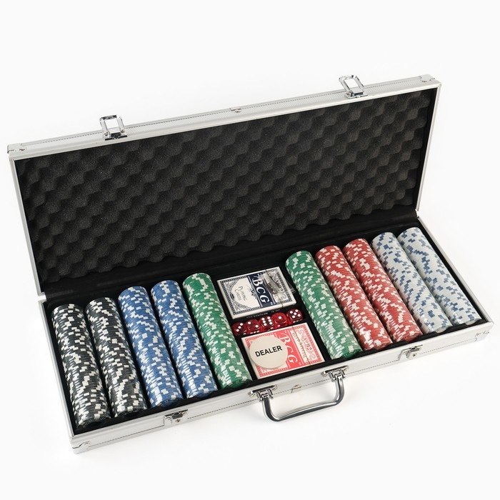 Покер в металлическом кейсе (2 колоды, фишки 500 шт б/номомин.,5 кубиков), 20.5 х 56 см