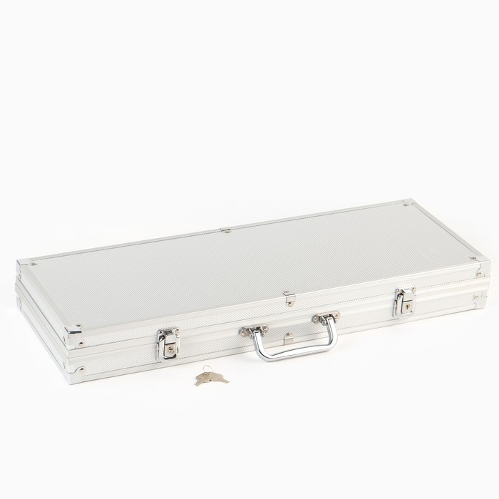 Набор в металлическом кейсе прекрасно подойдет для небольшой компании. Такой кейс удобно брать с собой — на вечеринку, на дачу, на пикник, в гости. Он закрывается на ключ, а значит, ни одна фишка из игры не потеряется в дороге. Пластиковые карты, фишки и внушительного вида кейс придают игре особую атмосферу.