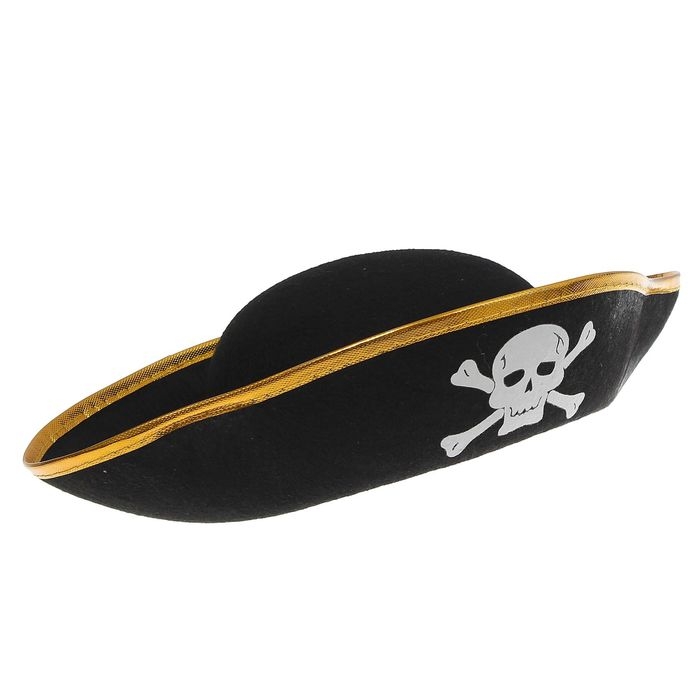 Шляпа пиратская, р-р 56-58, каёмка, цвета МИКС отличное дополнение к вашему образу. Мы предлагаем для вас множество вариантов, как эффектно появиться на вечеринке в образе пирата. Кинжал, костюм, бандана, попугай на плече и бутылка рома в руках – вот составляющие образа морского разбойника. Но все же шляпа остается важной деталью в образе.