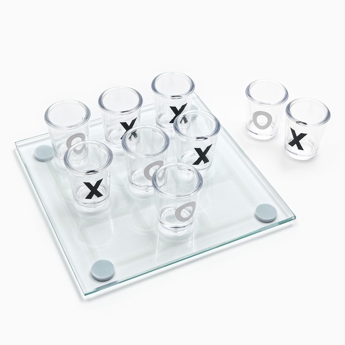 Алкогольная игра "Крестики нолики": 9 рюмок, 13х13 см - это увлекательная игра, а также прикольный подарок для тех, кто ценит юмор и оригинальность. Рюмки с изображением крестиков и ноликов находятся на стеклянной, разделенной на клеточки, подставке, она же является игровым полем. Вы можете разлить по рюмкам горячительный напиток и играть ими. Победитель может выпивать рюмки проигравшего каждый раз, когда обыграет своего противника.