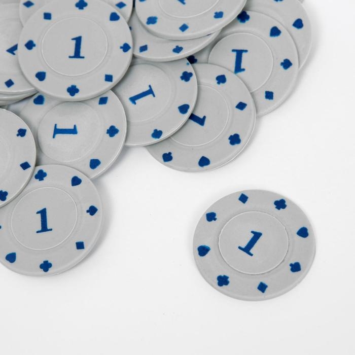 Набор фишек с номиналом 1, однотонные, серые, в наборе 25 шт.