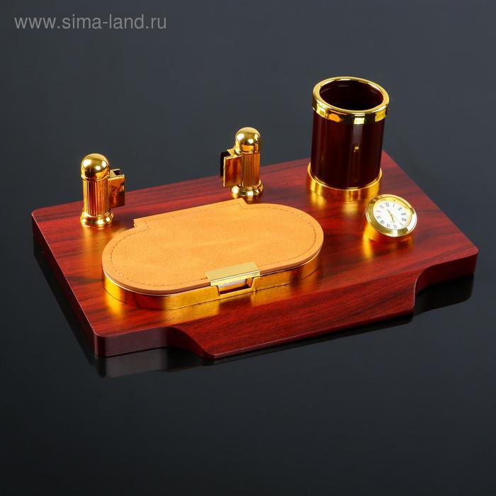 Набор настольный 4в1 с визитницей, красное дерево