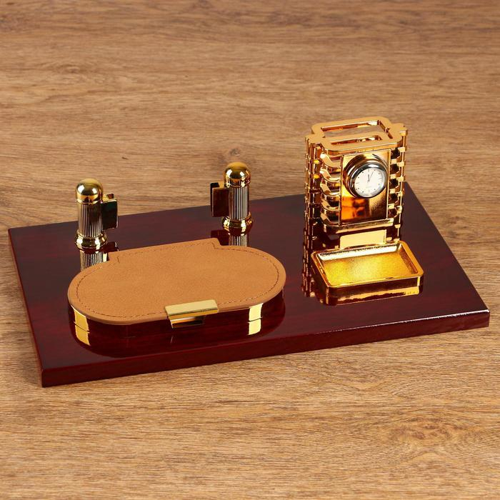 Набор настольный 4в1 с визитницей, красное дерево