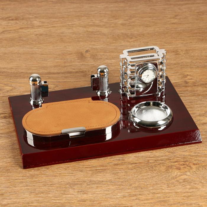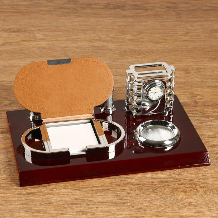 Набор настольный 4в1 с визитницей, красное дерево