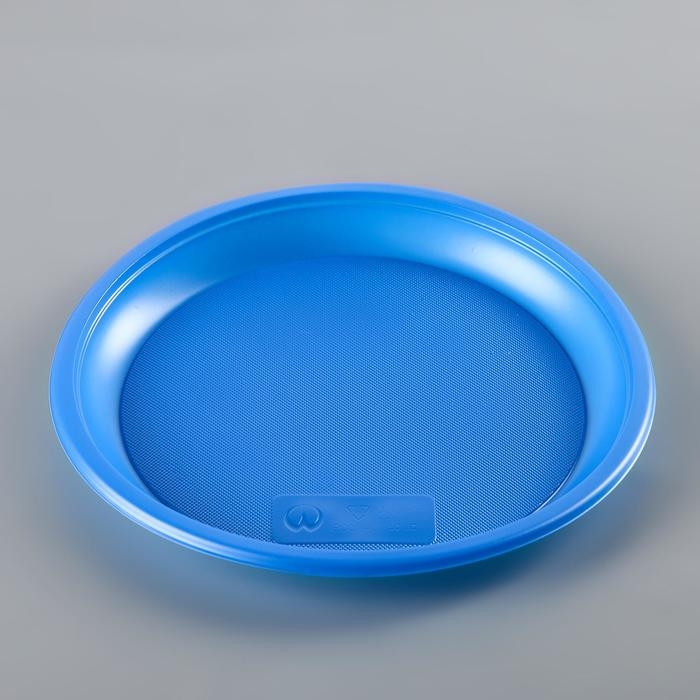Тарелки одноразовые, d= 21 см, цвет синий, 12 шт/уп