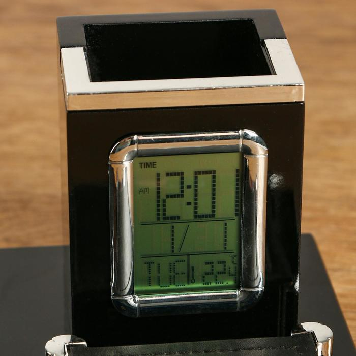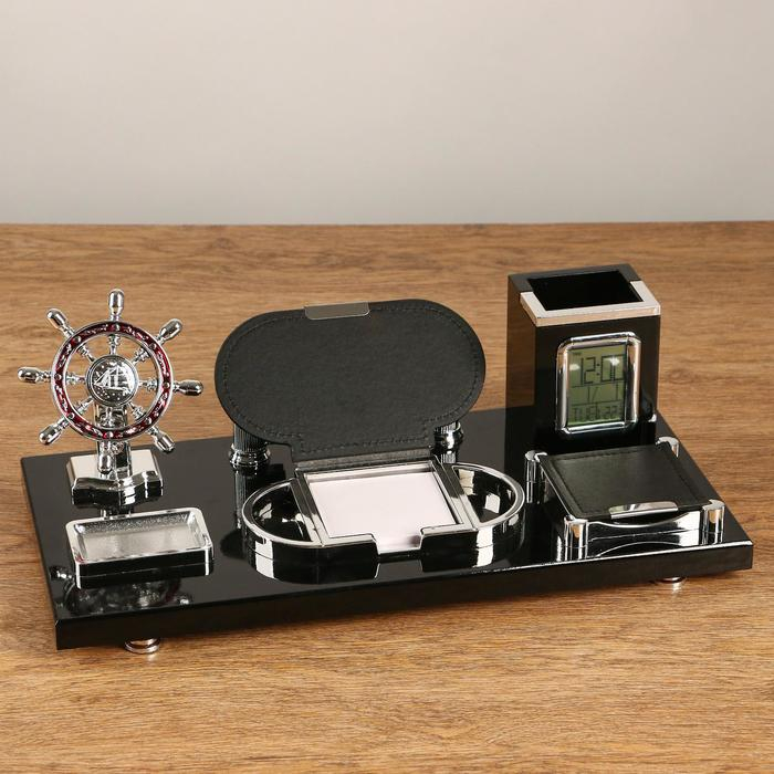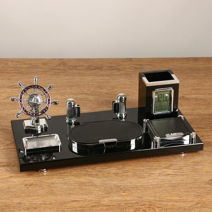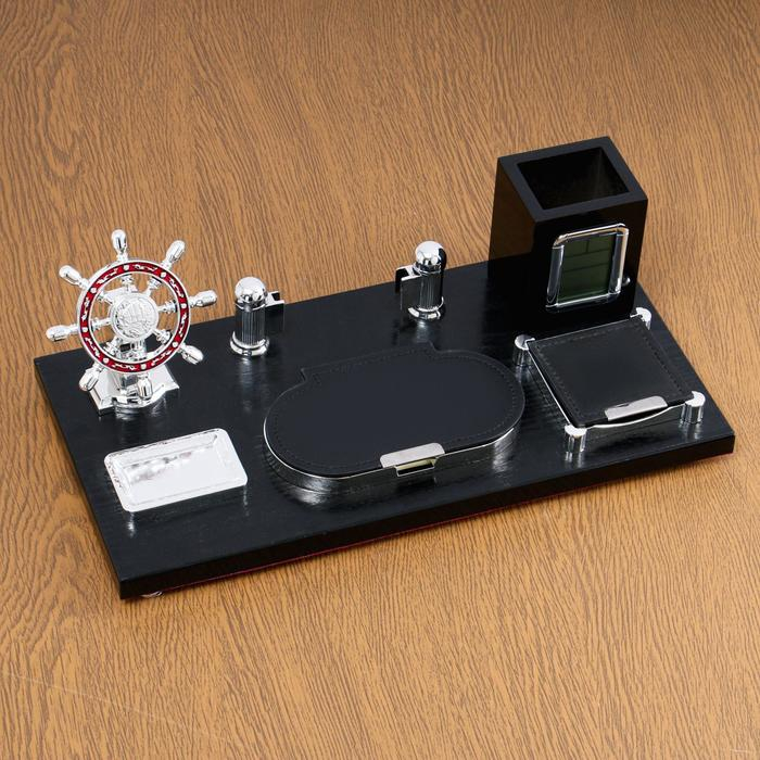 Набор настольный 7в1 с визитницей и часами, черное дерево 511394