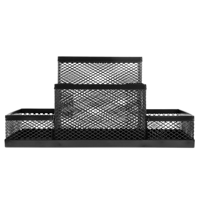 Подставка для канцелярских мелочей 4 отделения, чёрная, сетка