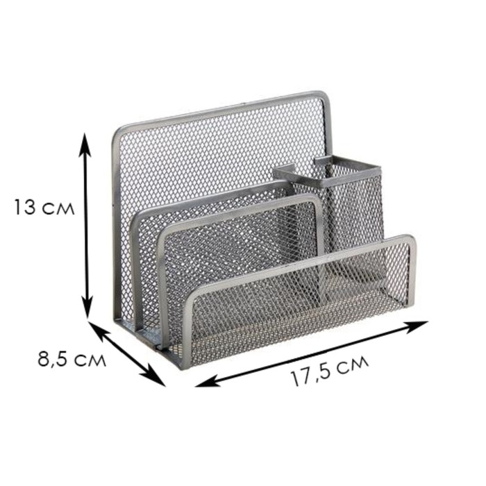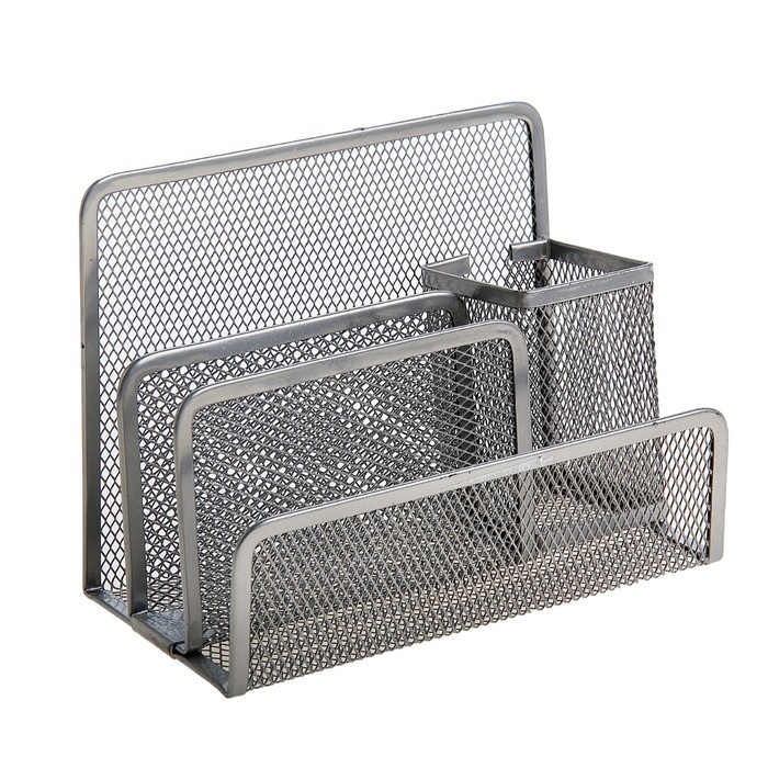 Подставка для канцелярских мелочей 4 отделения, серая, сетка
