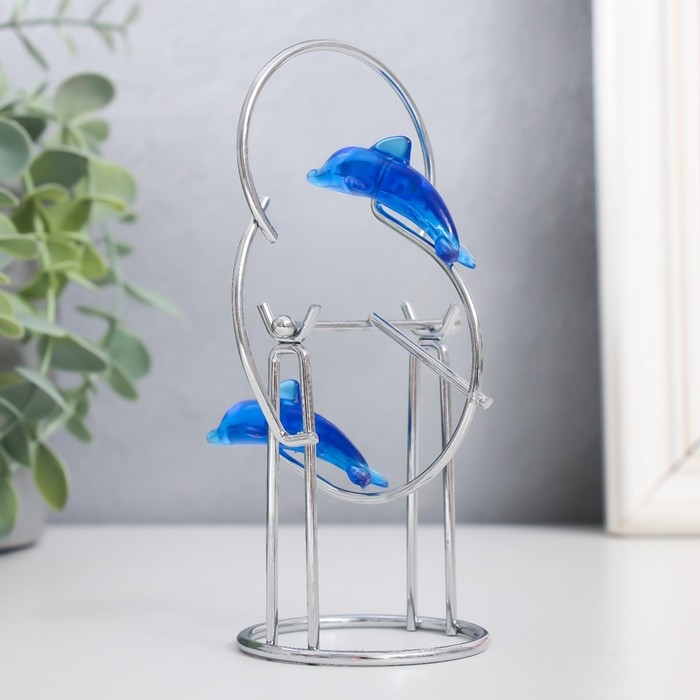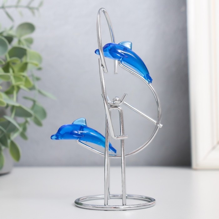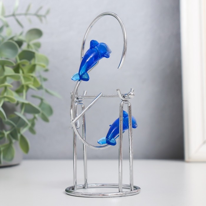 Маятник "Дельфины" друг за другом с кольцом и шариком 13 х 7 х 5,5 см