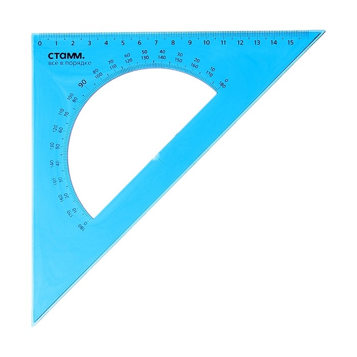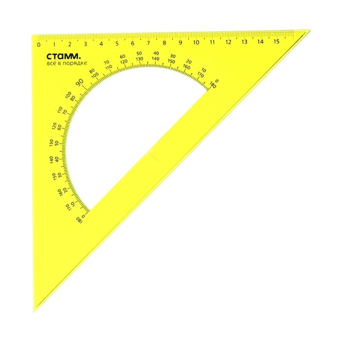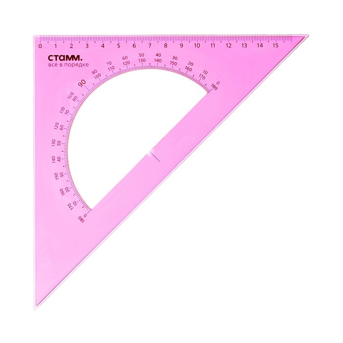 Треугольник «Neon Crystal» с транспортиром – незаменим для чертёжных и измерительных работ. Угол изделия – 45°, длина шкалы – 16 см. Треугольник имеет чёткую напечатанную миллиметровую шкалу и гладкую глянцевую поверхность. Представлен в неоновых цветах ассорти.