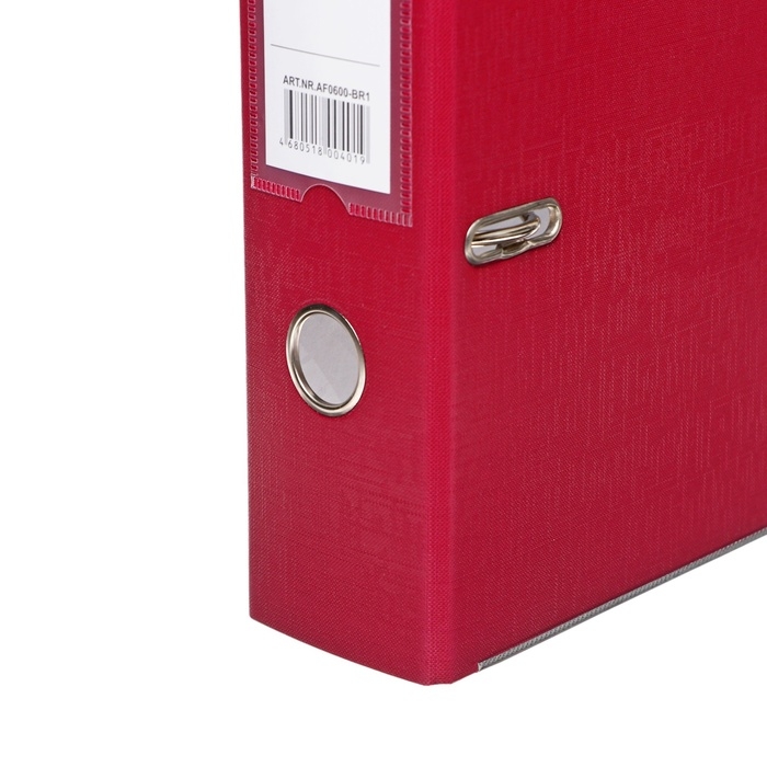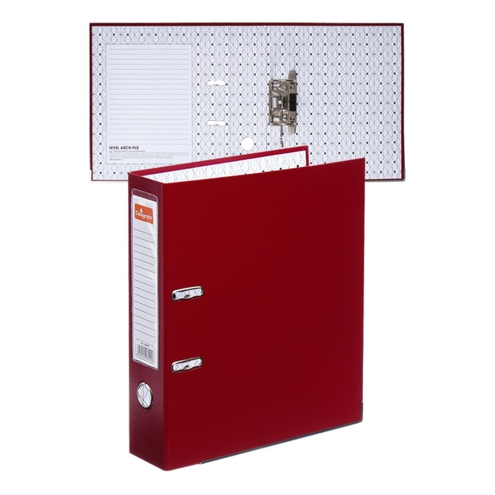 Папка формата А4 с вертикальной ориентацией изготовлена из плотного картона толщиной 1,75 мм, с внешним покрытием из переплетного материала с ПВХ-покрытием, который не имеет резкого запаха и отличается долговечностью и морозоустойчивостью. Благодаря такому плотному покрытию допустима влажная уборка изделия. Ширина корешка в 75 мм позволяет разместить до 500 листов. Нижние края папки защищены металлическими уголками, что увеличивает срок службы в 2 раза. Прорези для колец на внешней крышке позволяют оставаться папке, закрытой даже при большом количестве бумаг, а надёжный арочный механизм легко справляется с ежедневными нагрузками. Корешок снабжен этикеткой для маркировки содержимого, что позволяет структурировать информацию. Такая папка станет незаменимым помощником для работников с документацией, а цветовая палитра папки-регистратора отлично впишется в офисный интерьер