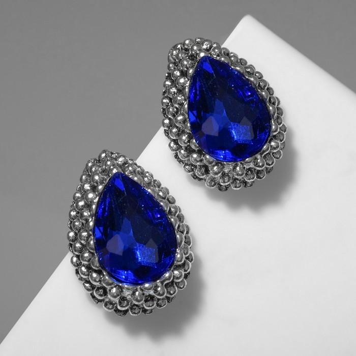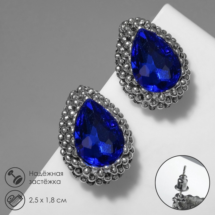 Серьги со стразами «Морское сияние», цвет синий в чернёном серебре