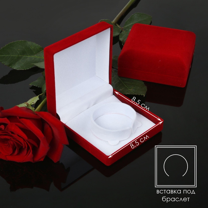 Футляр бархатный под браслет «Классический» 9×9×4, цвет красный, вставка белая, d=5,4 см