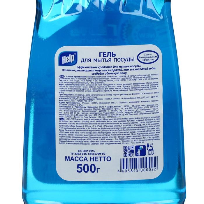 Средство для мытья посуды Help, антибактериальное, 500 мл