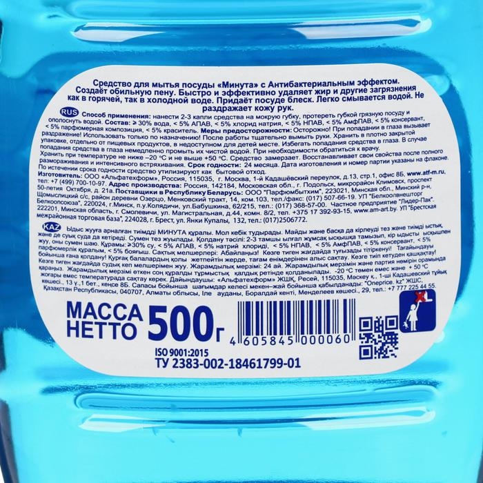 Средство для мытья посуды "Минута", антибактериальное, 500 мл - качественное и недорогое средство для мытья посуды. Эффективно удаляет с посуды жир и грязь. Отлично смывается даже холодной водой заботиться о молодости и нежности вашей кожи рук.