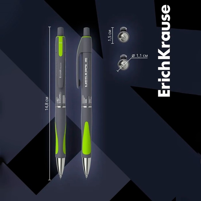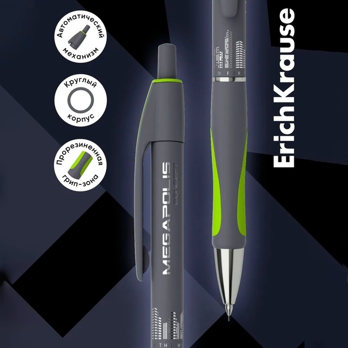 Механический карандаш с металлическим наконечником и убирающейся цангой. Карандаш имеет круглый глянцевый корпус с эргономичной грип-зоной, оснащенной двумя резиновыми неоновыми вставками. Твердость HB. Диаметр грифеля - 0.5 мм. Модель MEGAPOLIS® Concept имеет узнаваемую запатентованную форму, обладает великолепной эргономикой и стала одним из бестселлеров в ассортименте механических карандашей ErichKrause® более чем в пятидесяти странах мира.